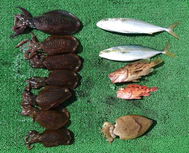 グループ永井さんらと乗り合いで出航!イカゎ微風!根魚ゎウネリ!の中皆さん最後まで頑張ってくれました!暑い中ぉ疲れ様でした! -