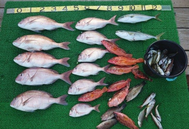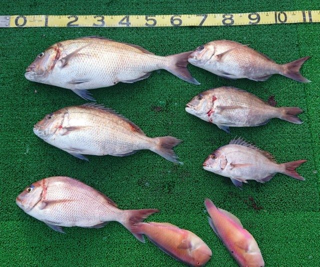 グループ松林さんらと出航!台風の影響でウネリと風で早上がり!皆さん頑張ってくれました!ぉ疲れ様でした! -