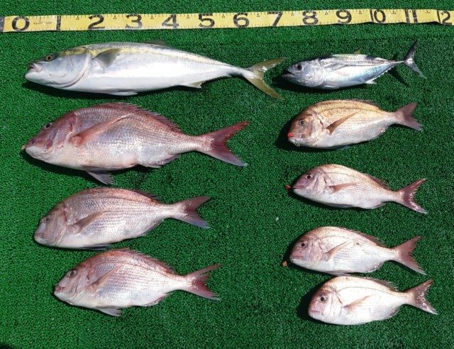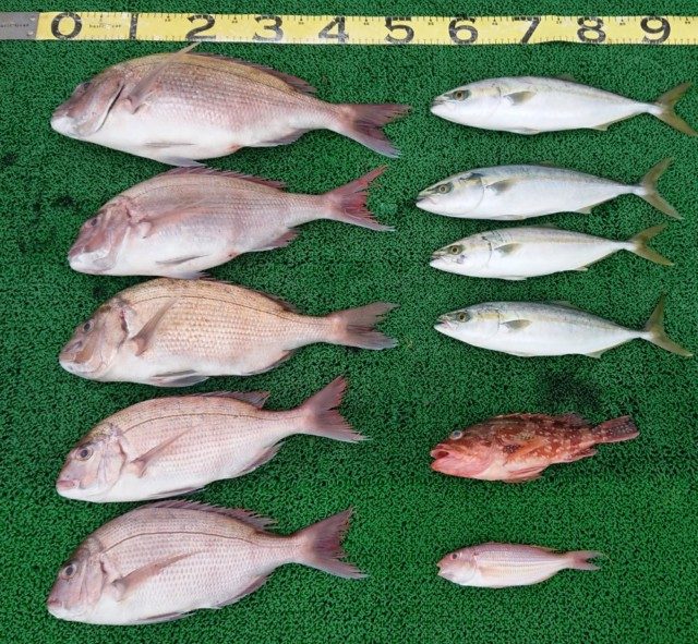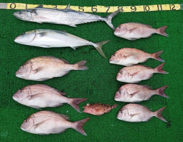 グループ池田さんらと乗り合いで出航!ウネリゎ無かったものの強風でアタリが微妙で厳しい中皆さん最後まで頑張ってくれました!ぉ疲れ様でした! -