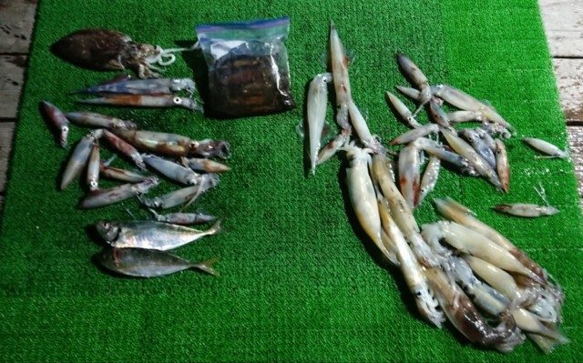 グループ北川さんらと出航!月夜の為か食いが渋く苦戦しました!こんな時こそアカイカ刺身で皆さんと食べて最後まで頑張りました!(笑) -