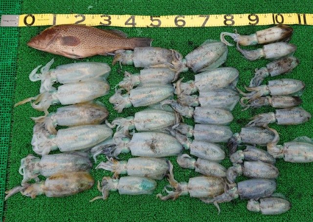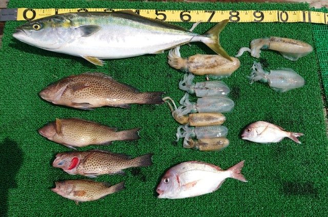 愛知の沢田さんら(神光丸)愛知の山内さんら(勇一丸)達と出航!無風&潮が動かず厳しい中皆さん最後まで頑張ってくれました!ぉ疲れ様でした! -