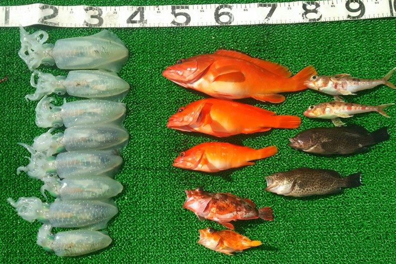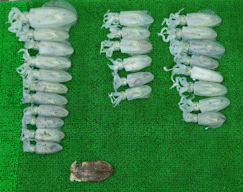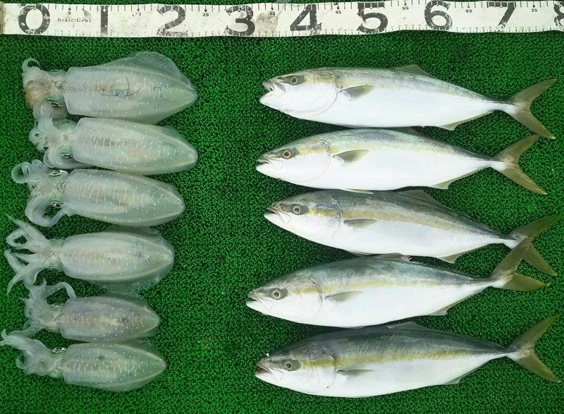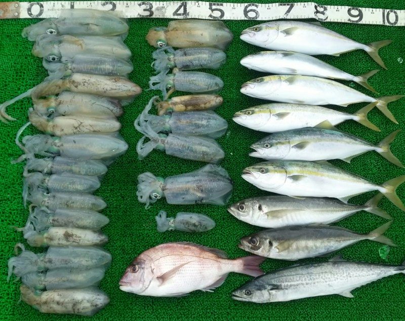 大阪の広田さんと出航!食いの渋い中最後まで頑張ってくれました!ぉ疲れ様でした!アオリ10杯の内沖漬け3杯コウイカ1杯! -