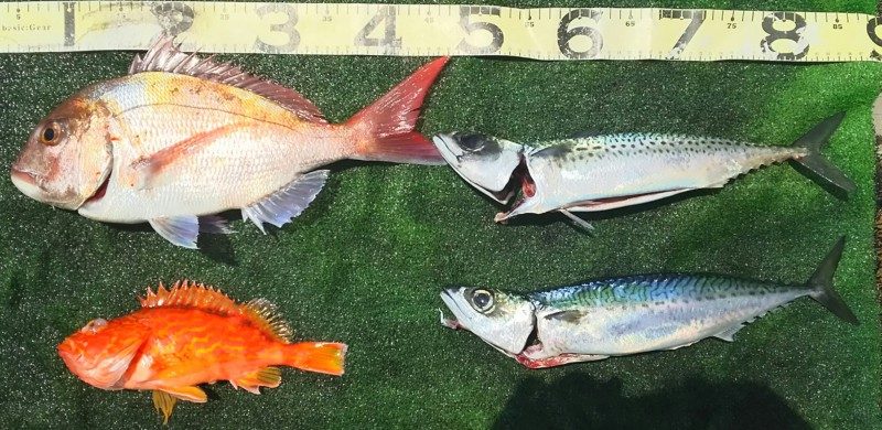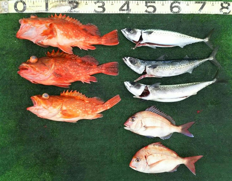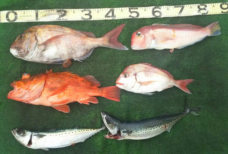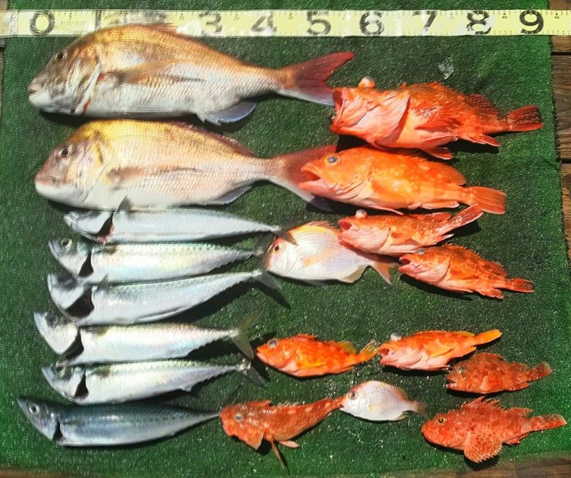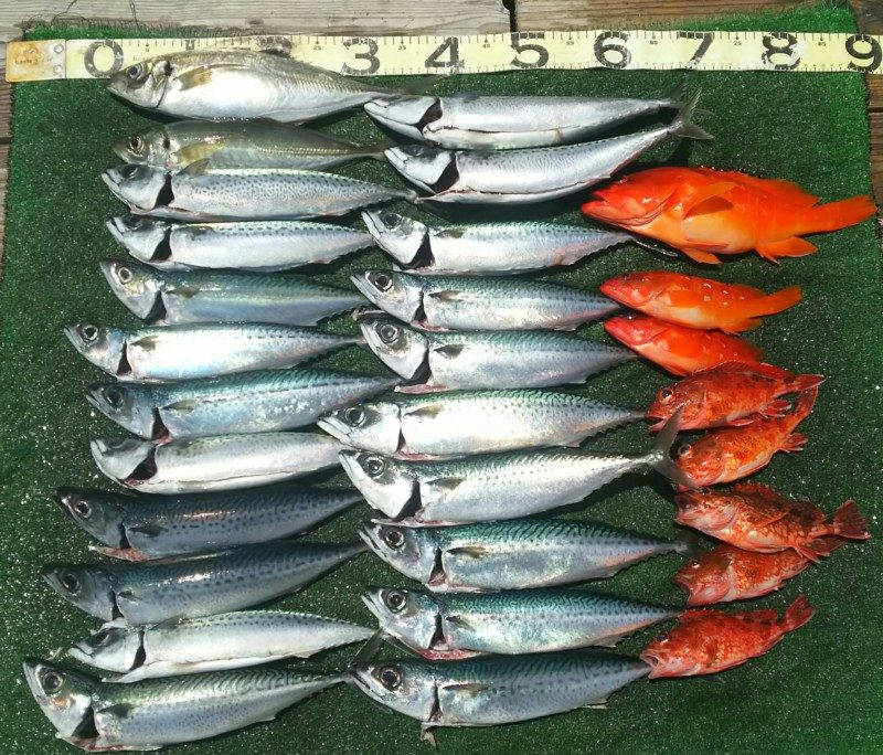 岐阜の山北さんと出航!かかり釣りで久しぶりの鯵狙い!かと思いきや鯵2匹後に鯖の猛攻に合い断念!後半ウネリの中テンヤ釣りで最後まで頑張ってくれました!暑い中ぉ疲れ様でした! -