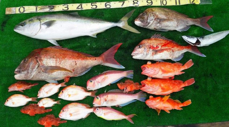 大阪の佐藤さんらと出航!潮が悪く五目釣りになってしまいました!皆さん最後まで頑張ってくれました!ぉ疲れ様でした! -