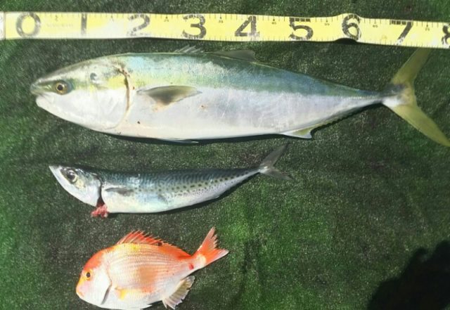 三重の富山さんらと出航!久々の青物GET!後半ゎ沖からの風で厳しい中最後まで頑張ってくれました!ぉ疲れ様でした! -