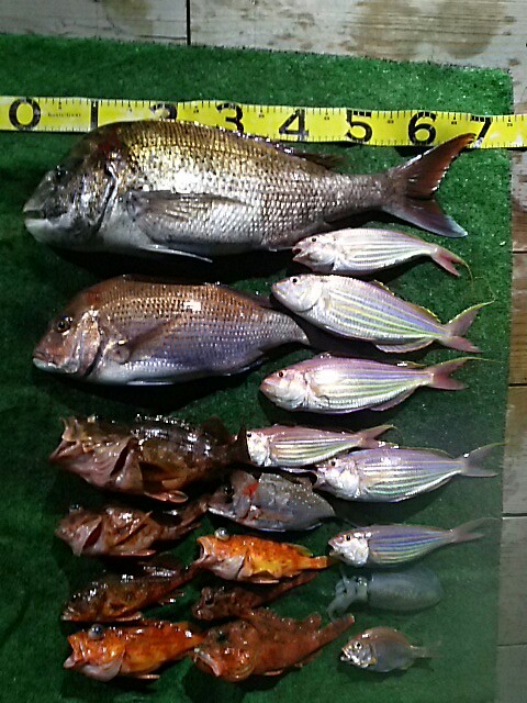 愛知の神さんらとエギングで出航!アオリイカ1.5頭に3杯!赤イカ1杯!アカハタ2匹でした!皆さん暑い中最後まで頑張ってくれました!ぉ疲れ様でした!(携帯の充電切れで写真が撮れませんでした!) -