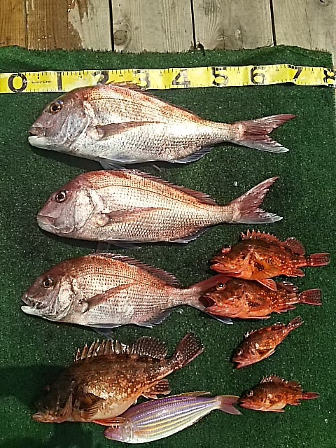 三重の野口さん達と鯛ラバで出航!潮が動かない中最後まで頑張ってくれました!ぉ疲れ様でした! -