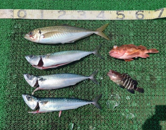鯵泳せでアタリが無く!急遽サビキに変更!鯖の中にギガアジが! -