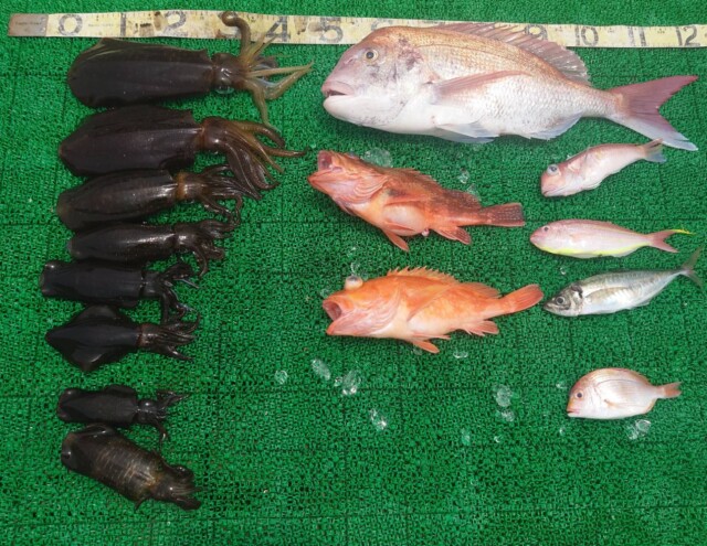 本日の午後便、47センチのシオ(カンパチの子供)、アオリイカは、厳しい釣りでした。